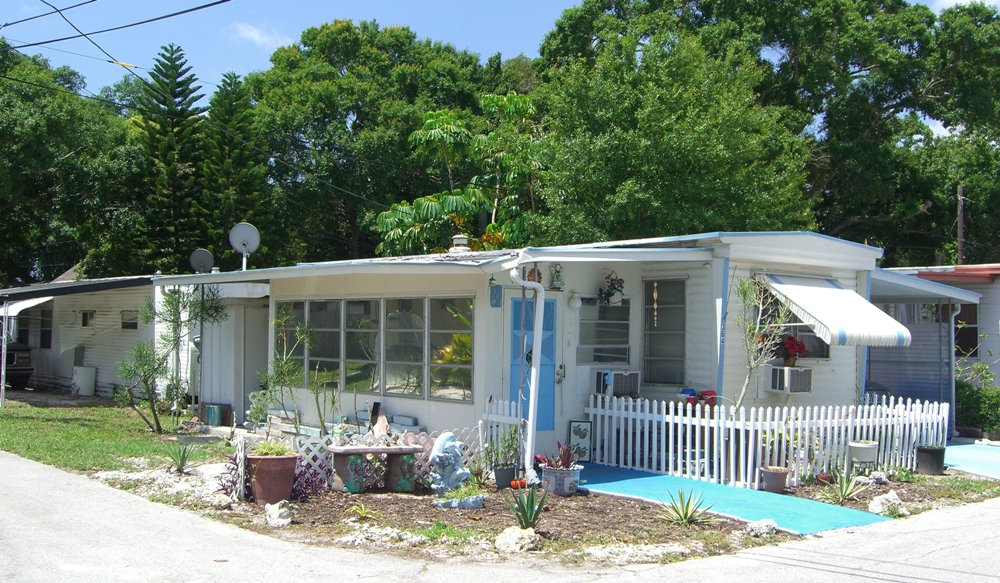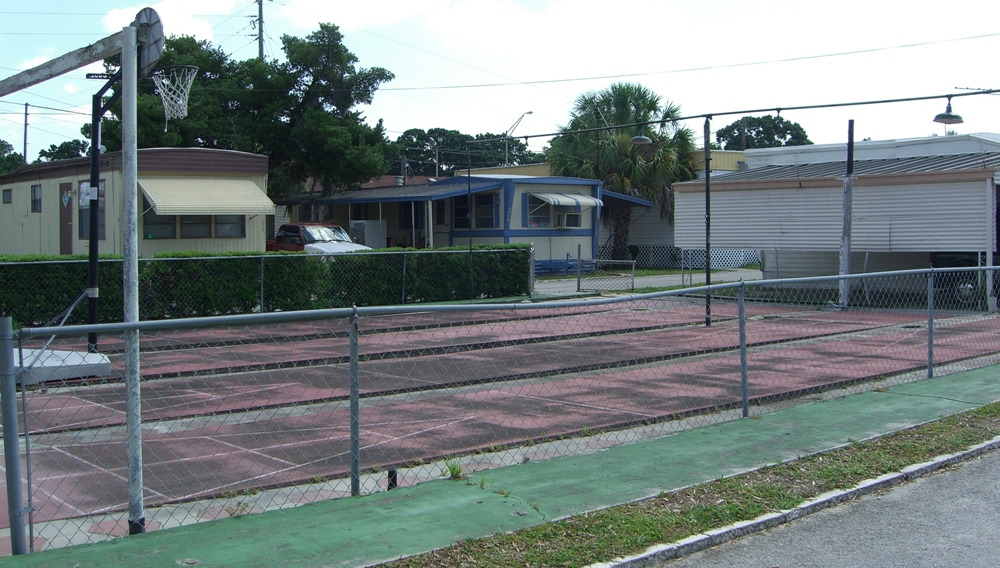 The mobile home park of Florida Justice Transitions. Clockwise from top left: Entrance. A residence. Clubhouse. Basketball court. (Click each picture to view larger.) |