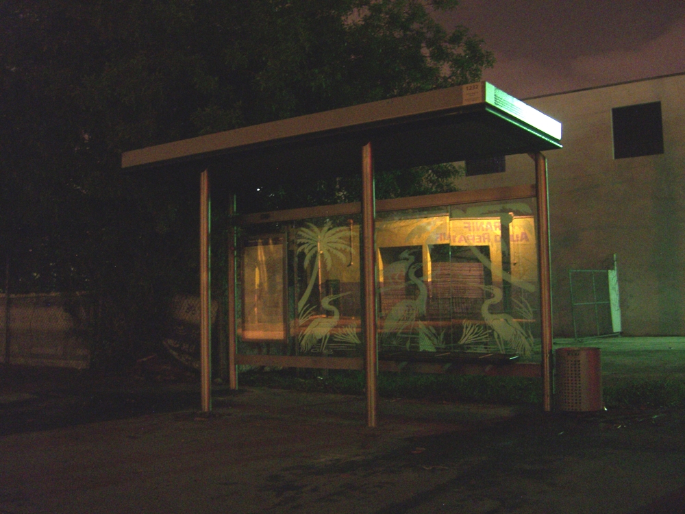 When the bridge encampment attracted international publicity, the government closed it down. This meant that probation and parole officers had to find new places to assign their clients to live. I was able to visit two such places. One was the front steps of the probation and parole office itself, where several men have been assigned. The other was a corner of a warehouse parking lot in an industrial area a few miles away, where a man was assigned alone. For the second place, when it rains the man sits in the nearby bus shelter.