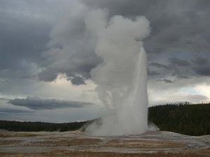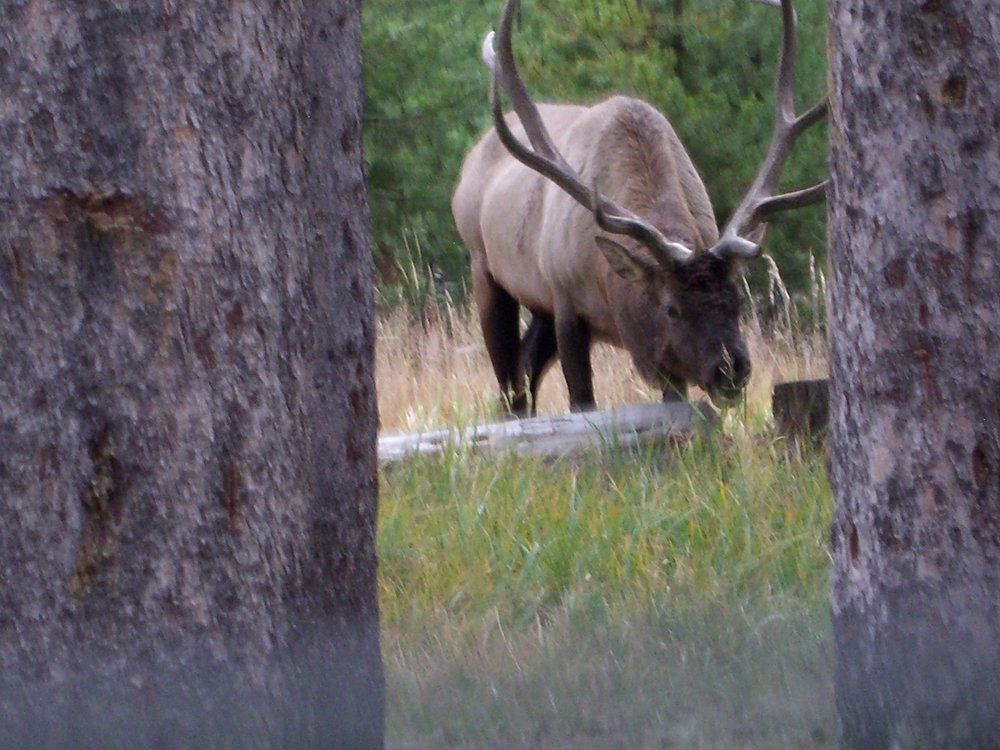 Yellowstone National Park. Old Faithful Geyser and a grazing elk. (Click photos to view larger.) |
