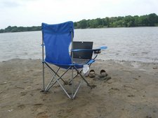 After the conference, I think I slowed down a little bit and let myself start smelling the roses along the way. I didn't have a deadline anymore, except for completing my trek across the northern states before winter set in. I bought a collapsible camp chair and started using it to set myself up at interesting waterfront spots to write my notes about the trip and my interviews.